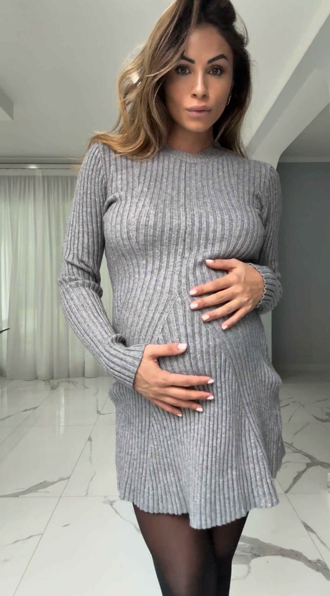 Questo abito elasticizzato a costine valorizza la silhouette con il suo design geometrico unico, creato dalle sottili righe che si intrecciano armoniosamente. Il tessuto aderente garantisce comfort e libertà di movimento, ideale per un look elegante e moderno in ogni occasione. Un capo versatile che unisce stile e praticità, perfetto per chi cerca un tocco distintivo nel guardaroba.