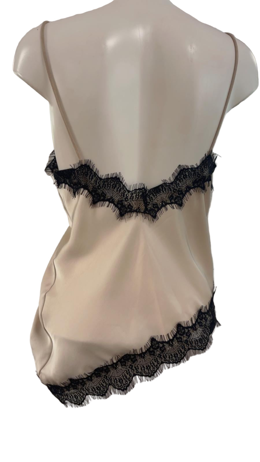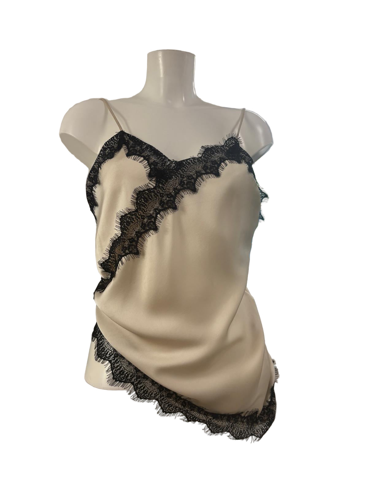 Questa canotta in raso è arricchita da dettagli in pizzo delicato, unendo eleganza e comfort. Il tessuto lucido conferisce una sensazione di morbidezza sulla pelle, mentre il pizzo aggiunge un tocco sofisticato e femminile, ideale per occasioni speciali o per arricchire il guardaroba quotidiano con stile raffinato.