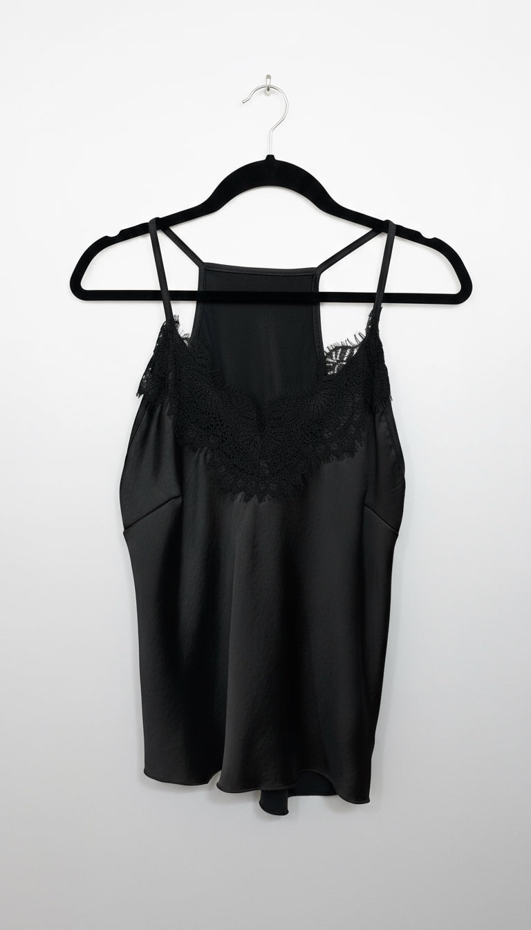 Canotta in raso con profili in pizzo