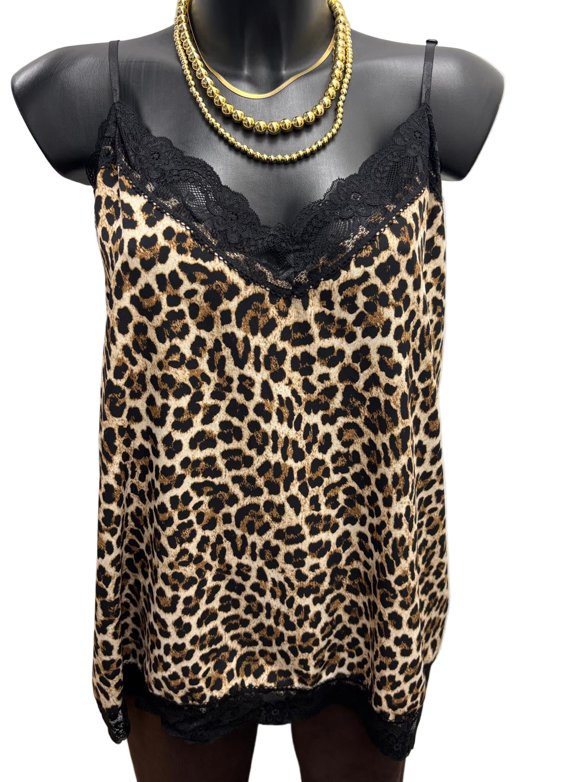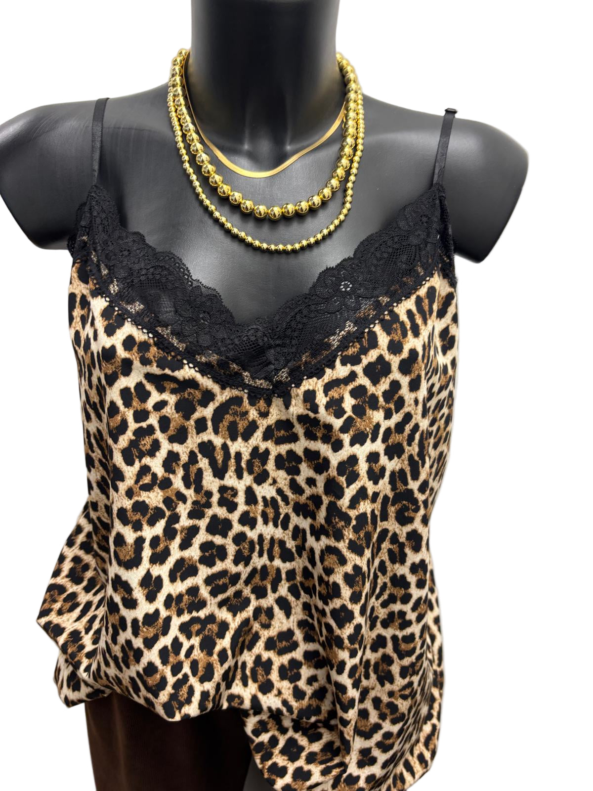Canotta maculata in raso con pizzo