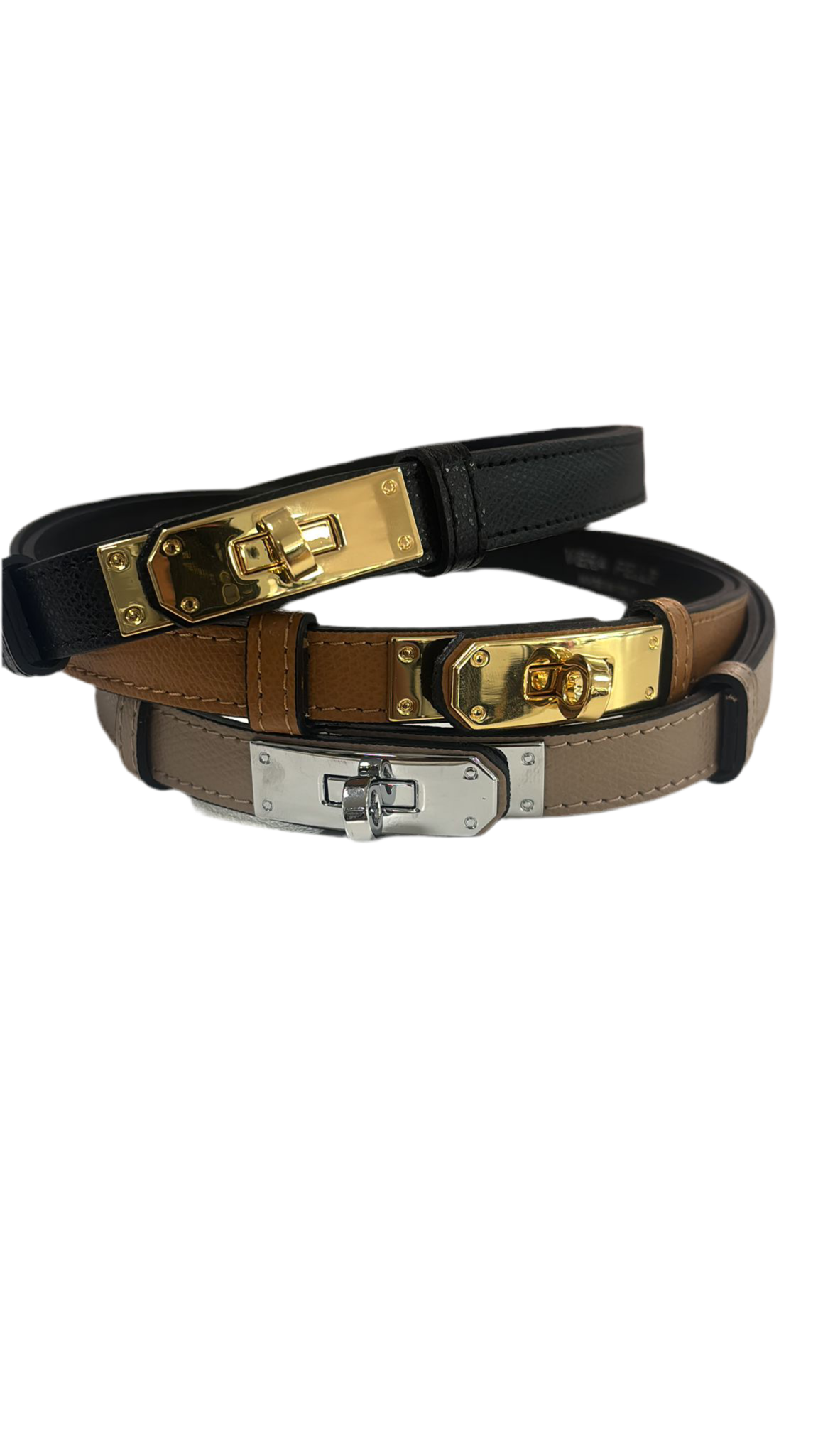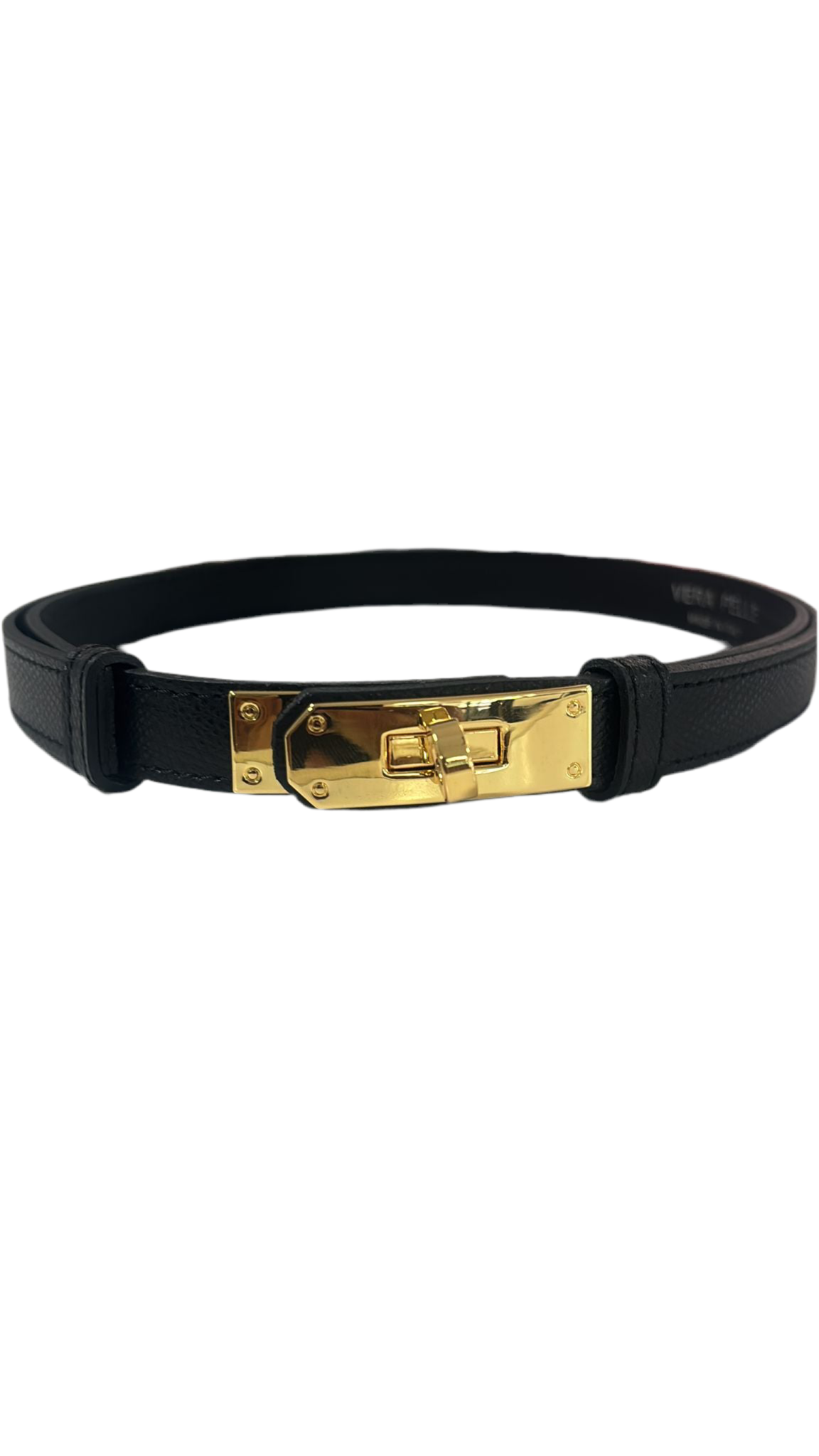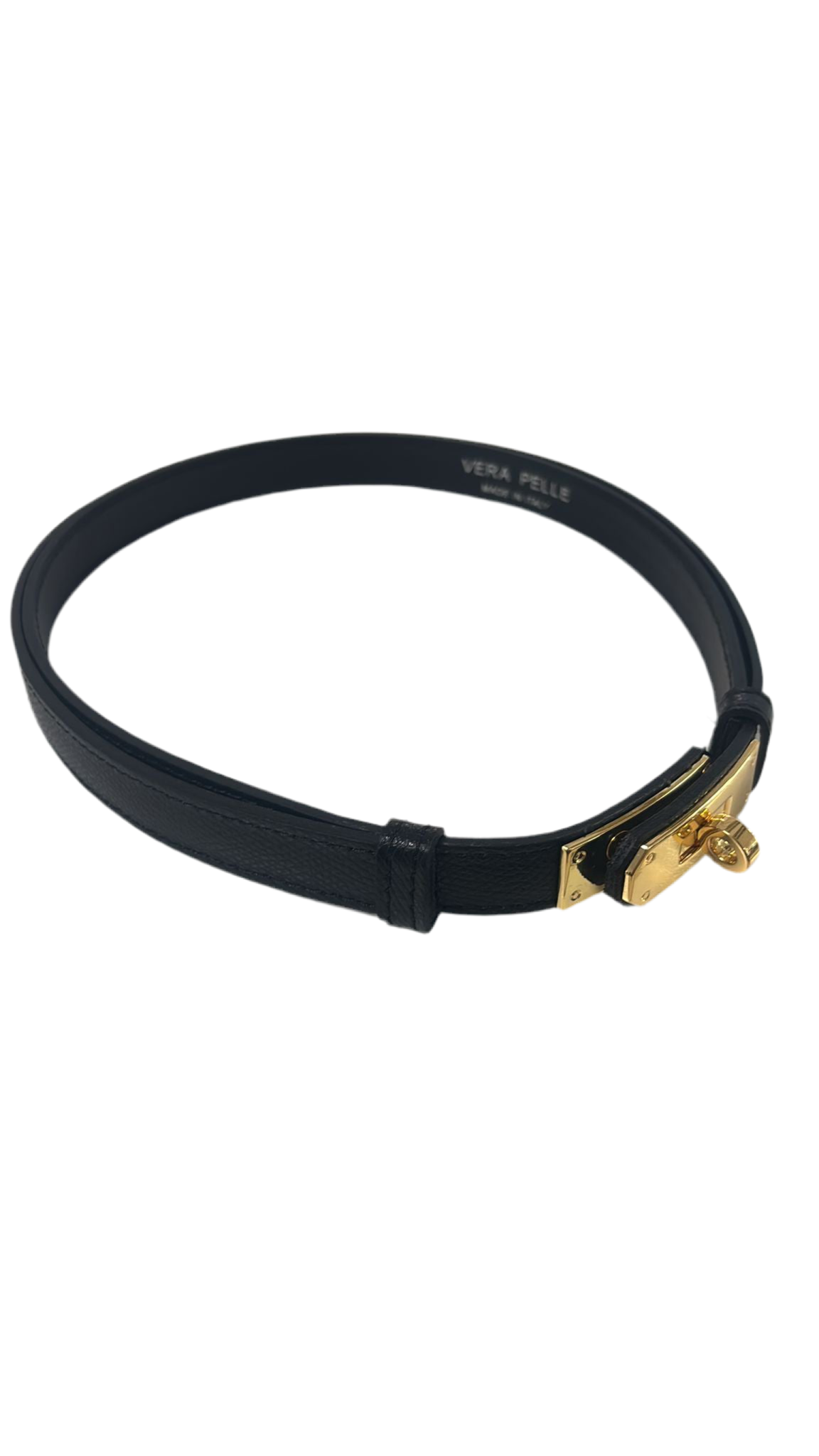 Cintura regolabile a misura in vera pelle.