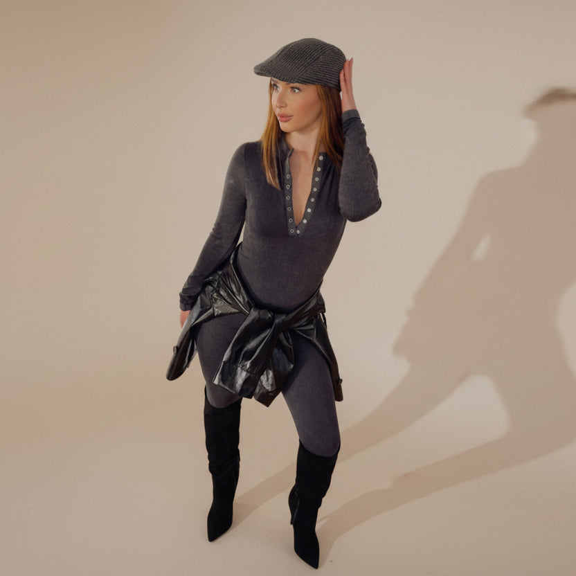 Completo Tuta intera in tessuto molto elasticizzato che si adatta perfettamente al tuo corpo, garantendo comfort e libertà di movimento durante tutta la giornata. I bottoni automatici sulla scollatura permettono un'apertura pratica e veloce, ideale per chi cerca praticità senza compromessi. La qualità del tessuto in taglia M assicura una vestibilità dalla XS alla XL, perfetto per chi non scende a compromessi tra stile e funzionalità.