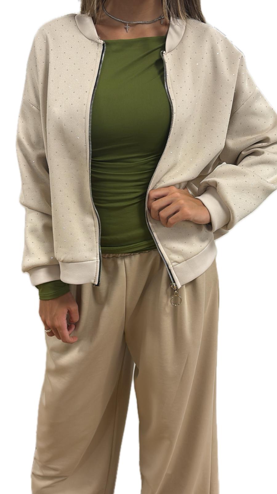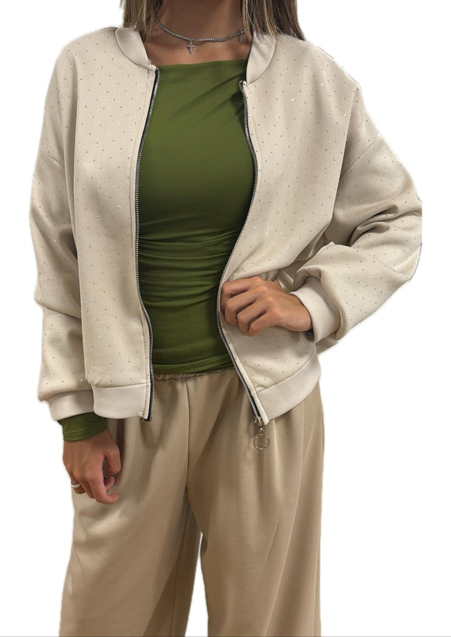 Felpa con strass e zip