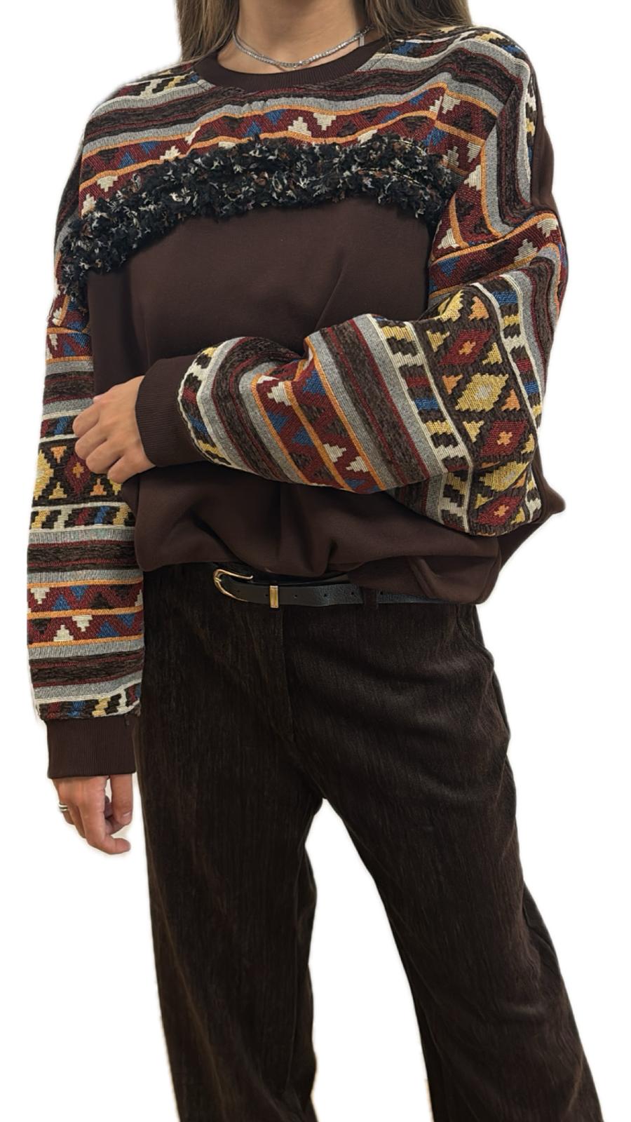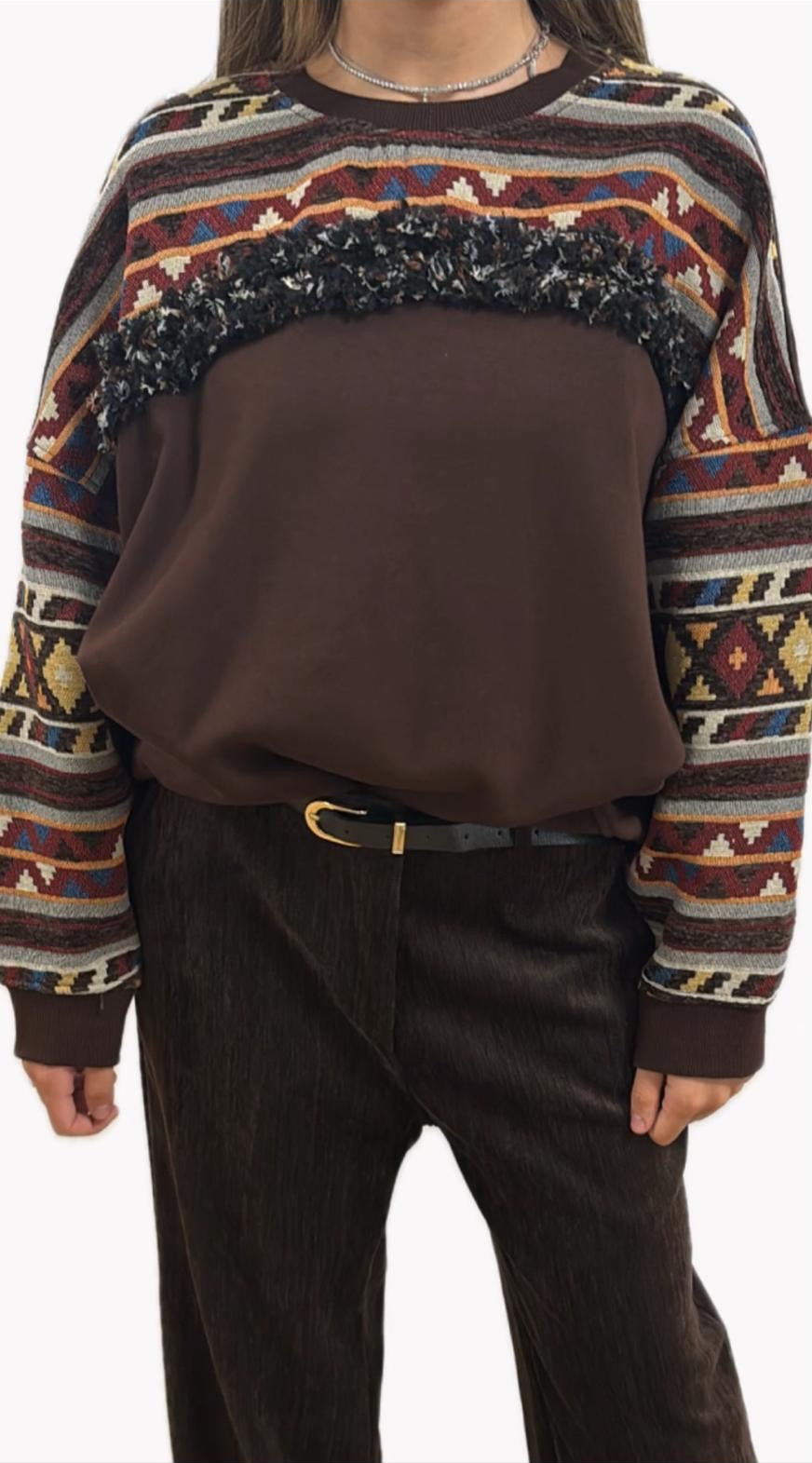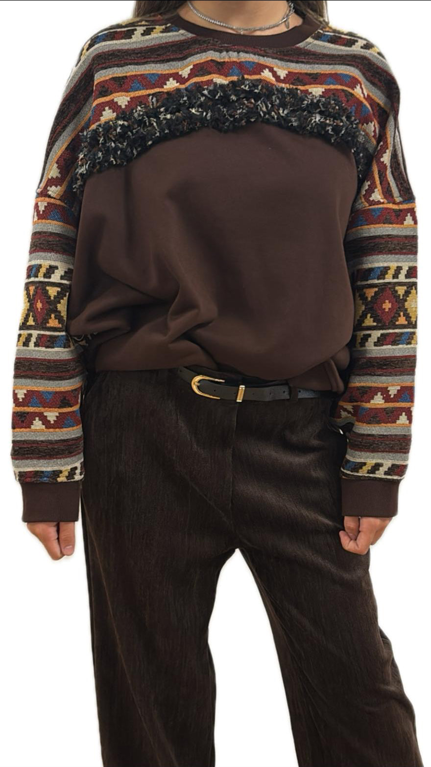 Questa felpa garzata con inserti a contrasto combina comfort e stile in modo sofisticato. Il tessuto garzato garantisce un'ottima morbidezza e calore, mentre gli inserti a contrasto donano un tocco moderno e distintivo. Perfetta per chi cerca un capo versatile, capace di abbinarsi facilmente a diverse occasioni mantenendo un look curato e contemporaneo.