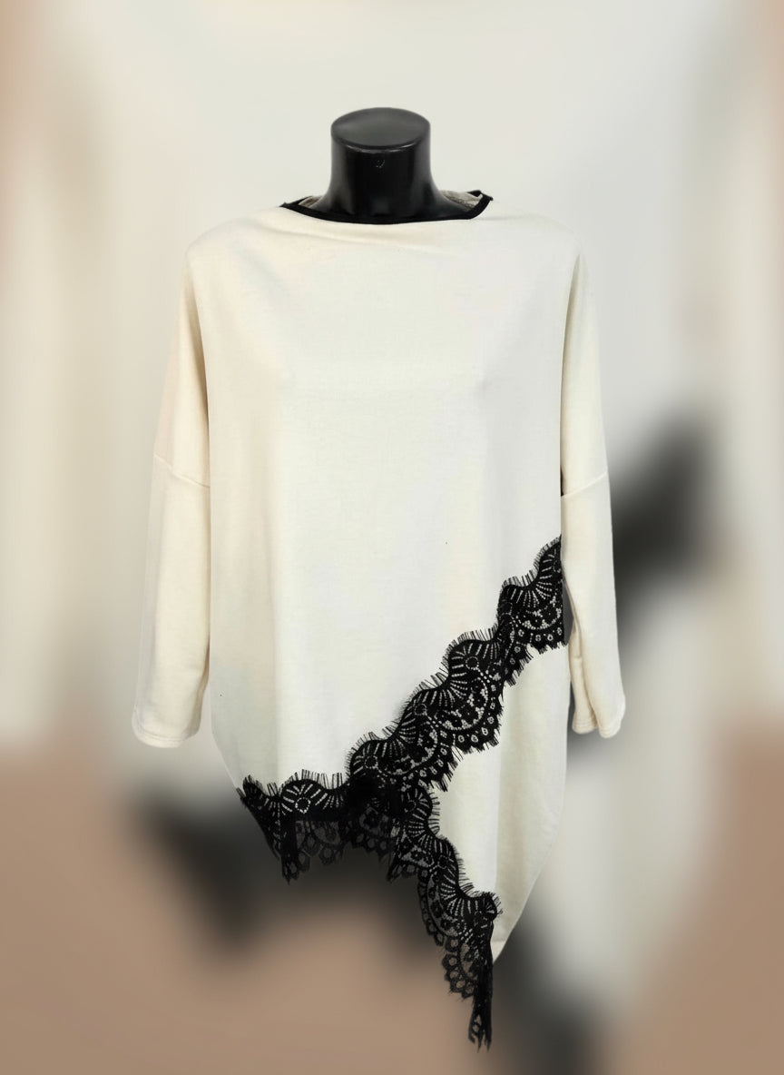 Questa felpa over presenta dettagli raffinati in pizzo lungo i profili, che aggiungono un tocco di eleganza a un capo casual. Il taglio ampio garantisce comodità e libertà di movimento, ideale per chi cerca stile e praticità. Realizzata con materiali di qualità, unisce morbidezza e resistenza per un uso quotidiano senza rinunciare al design distintivo.