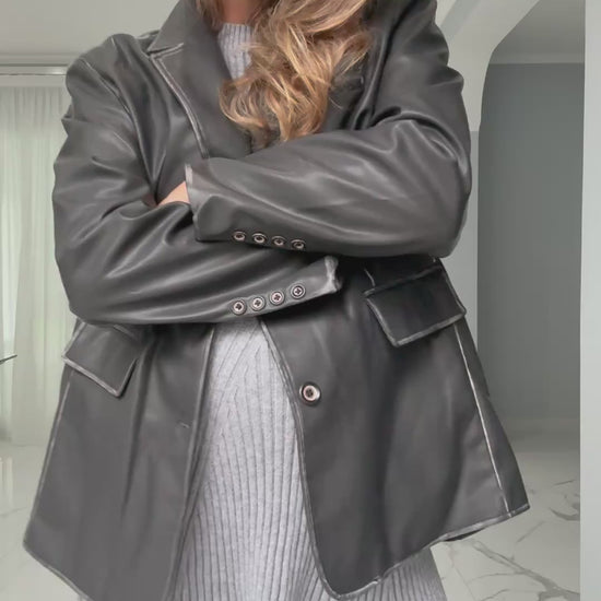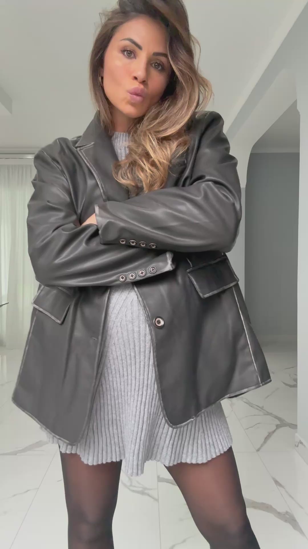 Questa giacca in ecopelle di alta qualità unisce stile e comfort, con una vestibilità over che valorizza ogni silhouette. La fodera garantisce una sensazione piacevole sulla pelle mentre le sottili graffiature grigio chiaro donano un tocco unico e alla moda. Perfetta per aggiungere carattere ai tuoi outfit in modo sostenibile e raffinato.