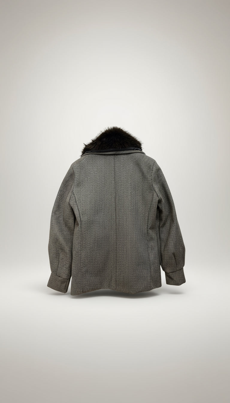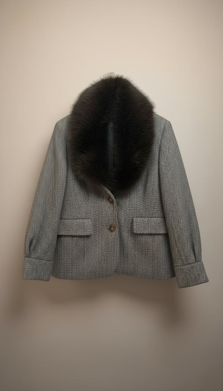 Giacca elegante in panno con collo in eco pelliccia color visone rimovibile che trasforma il tuo look in un istante. Il design sofisticato e versatile si adatta perfettamente a ogni occasione, dal casual al formale. La qualità del tessuto garantisce comfort e durabilità nel tempo, mentre il collo staccabile ti permette di personalizzare lo stile secondo le tue preferenze. Un capo essenziale che non può mancare nel tuo guardaroba.