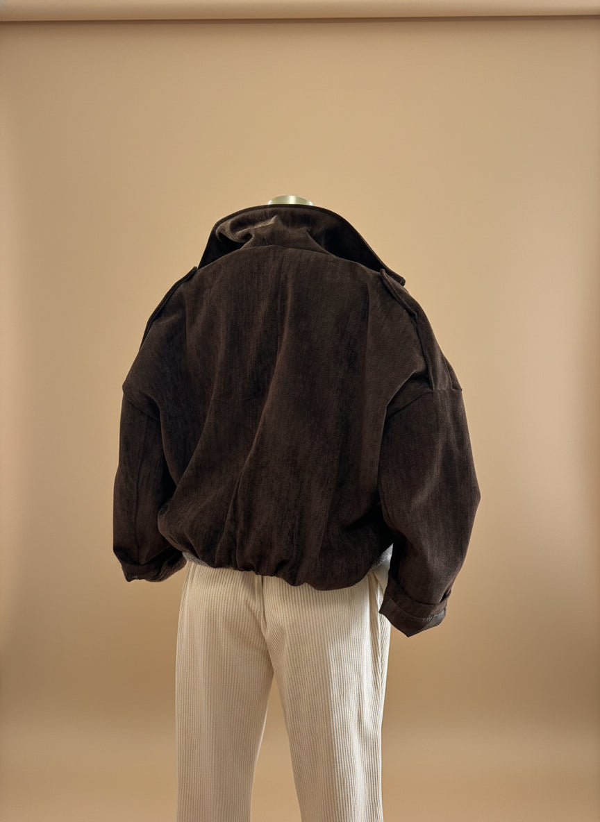 Scopri il nostro giubbotto in velluto con la silhouette over che domina le tendenze attuali. Realizzato con un morbido tessuto in velluto, questo capo vanta una fodera interna che garantisce comfort e durabilità nel tempo. L'elastico in vita con effetto bomber aggiunge un tocco di dinamismo e movimento, perfetto per chi ama uno stile contemporaneo e sofisticato. Versatile e affascinante, è il pezzo che trasforma qualsiasi outfit in un'affermazione di stile consapevole.