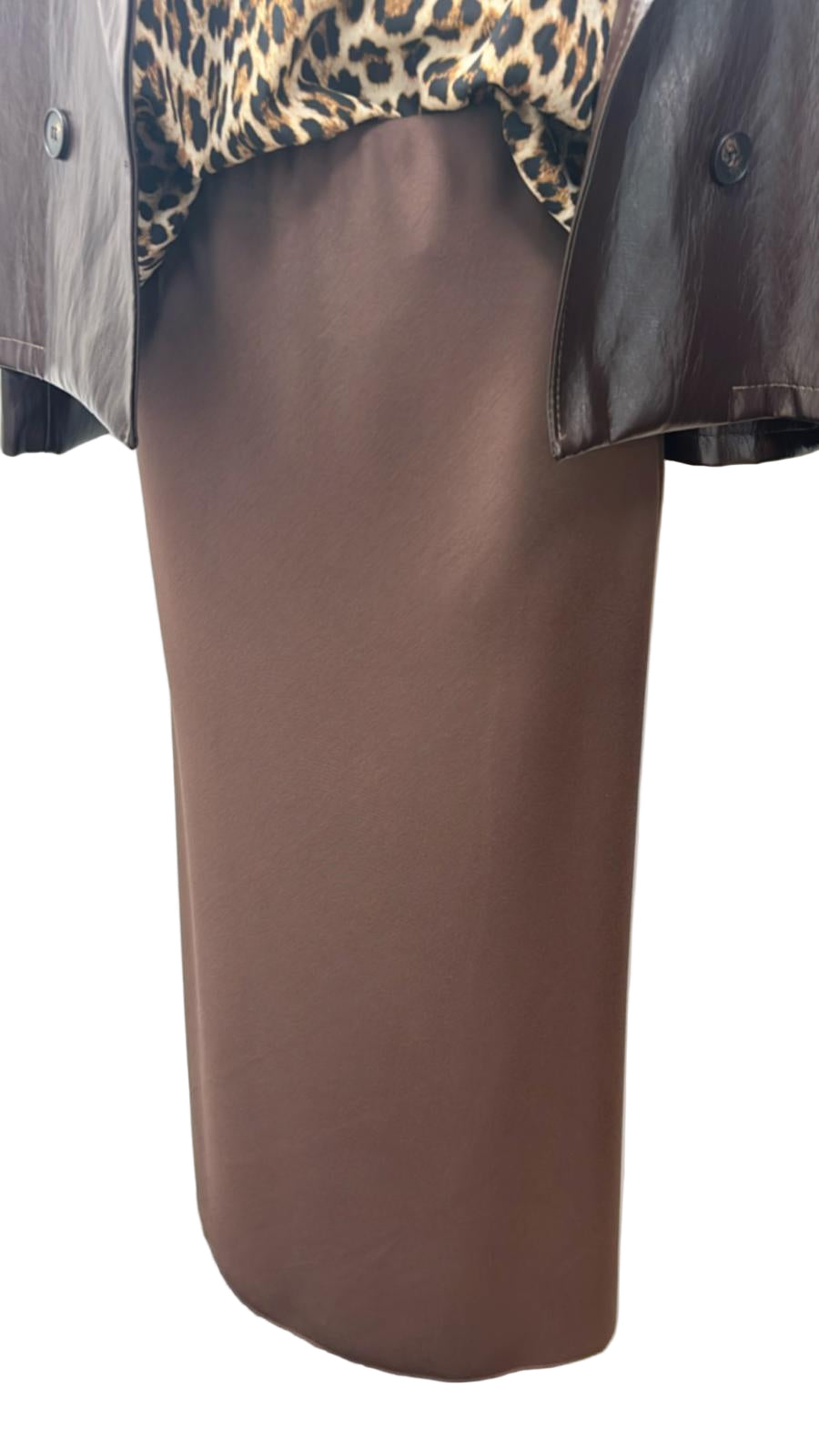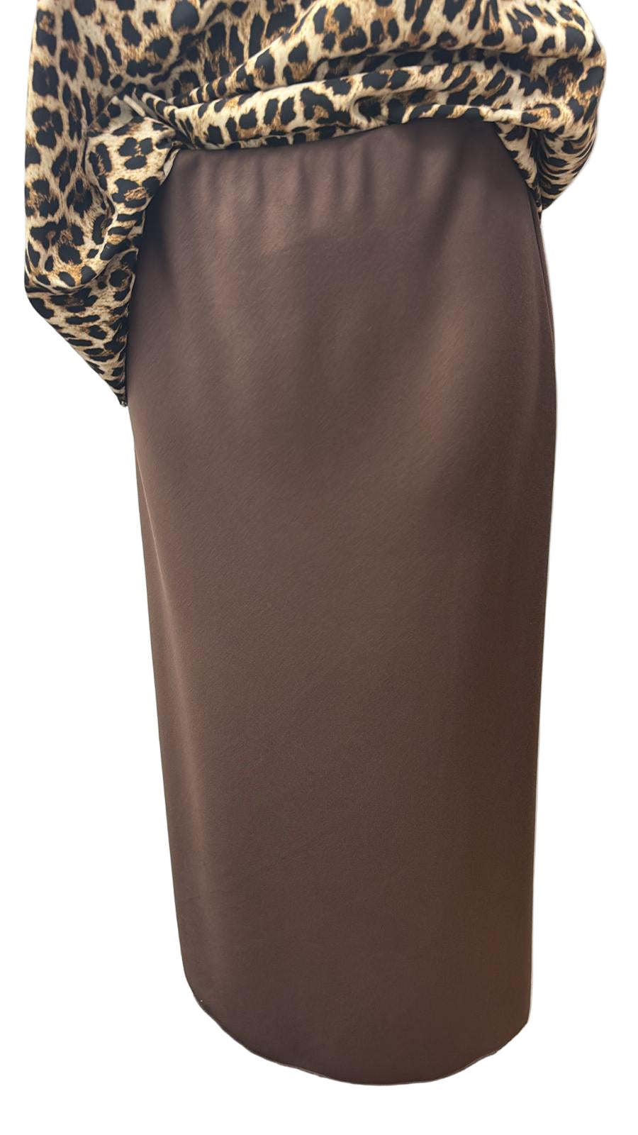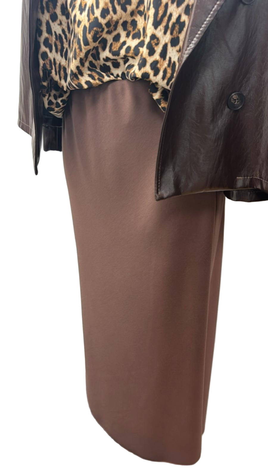 Questa gonna a tubino in viscosa presenta un design elegante e aderente che accentua la silhouette naturale offrendo un comfort eccezionale grazie al suo tessuto traspirante e morbido. Ideale per abbigliamento professionale o formale, la sua trama raffinata e il taglio su misura lo rendono un pezzo versatile per un guardaroba sofisticato. Il materiale di qualità della gonna garantisce durata e un aspetto lucido per tutto il giorno.