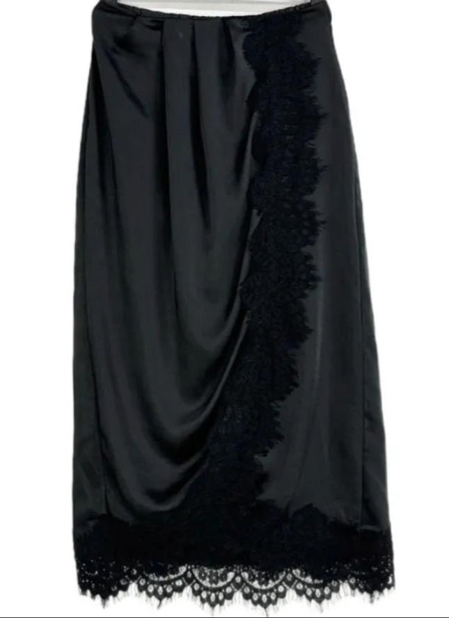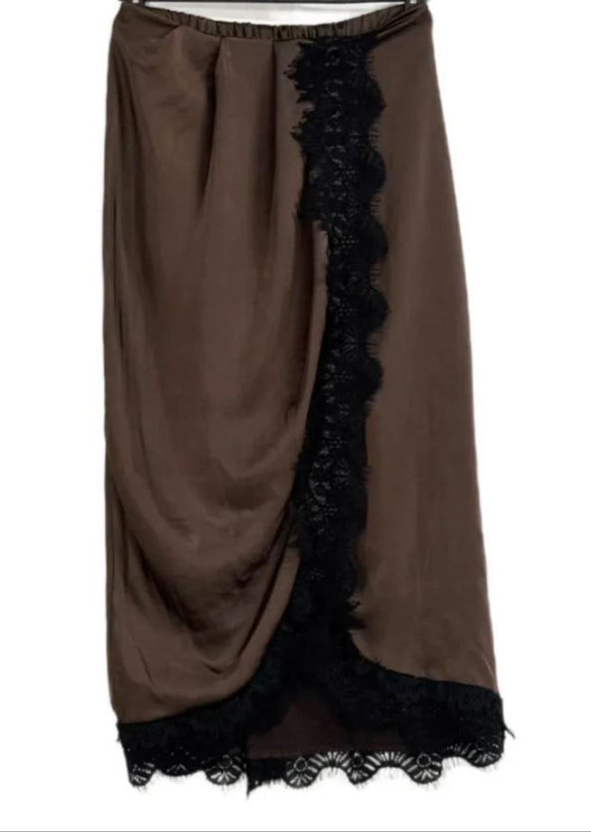 Gonna a portafoglio con profili in pizzo e raso
