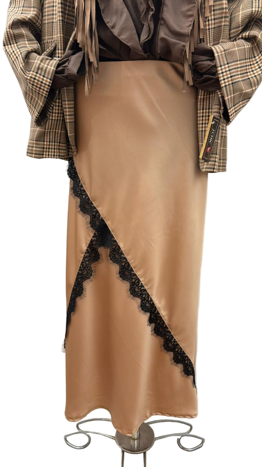 Questa gonna in raso unisce eleganza e raffinatezza grazie ai suoi dettagli in pizzo, creando un capo versatile e sofisticato. Il tessuto lucido valorizza la silhouette, mentre il pizzo aggiunge un tocco di delicatezza e stile, ideale per occasioni sia formali che serali. Perfetta per chi cerca un equilibrio tra classe e modernità.