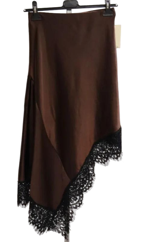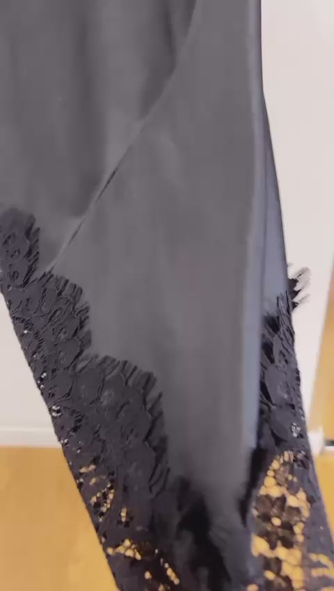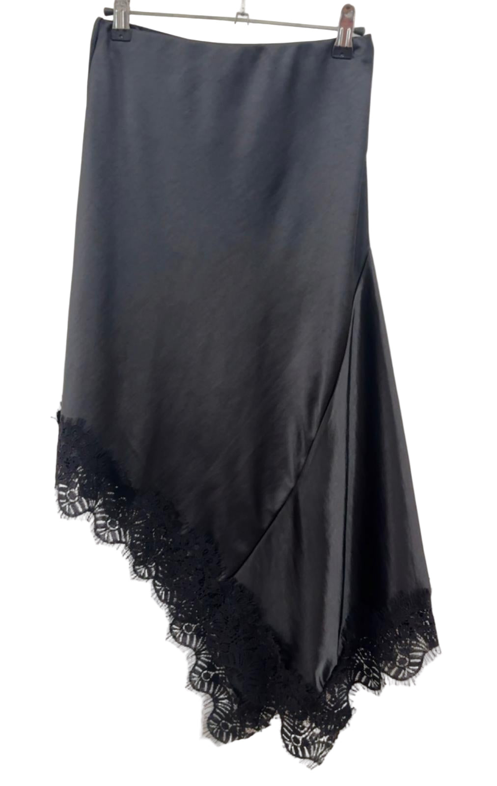 Questa gonna in raso, arricchita da raffinati inserti in pizzo, combina eleganza e qualità superiore. Realizzata con un taglio di sbieco, valorizza la silhouette offrendo una caduta fluida e avvolgente. Perfetta per chi ricerca un capo sofisticato che unisce texture preziose e un design studiato per un comfort impeccabile.
