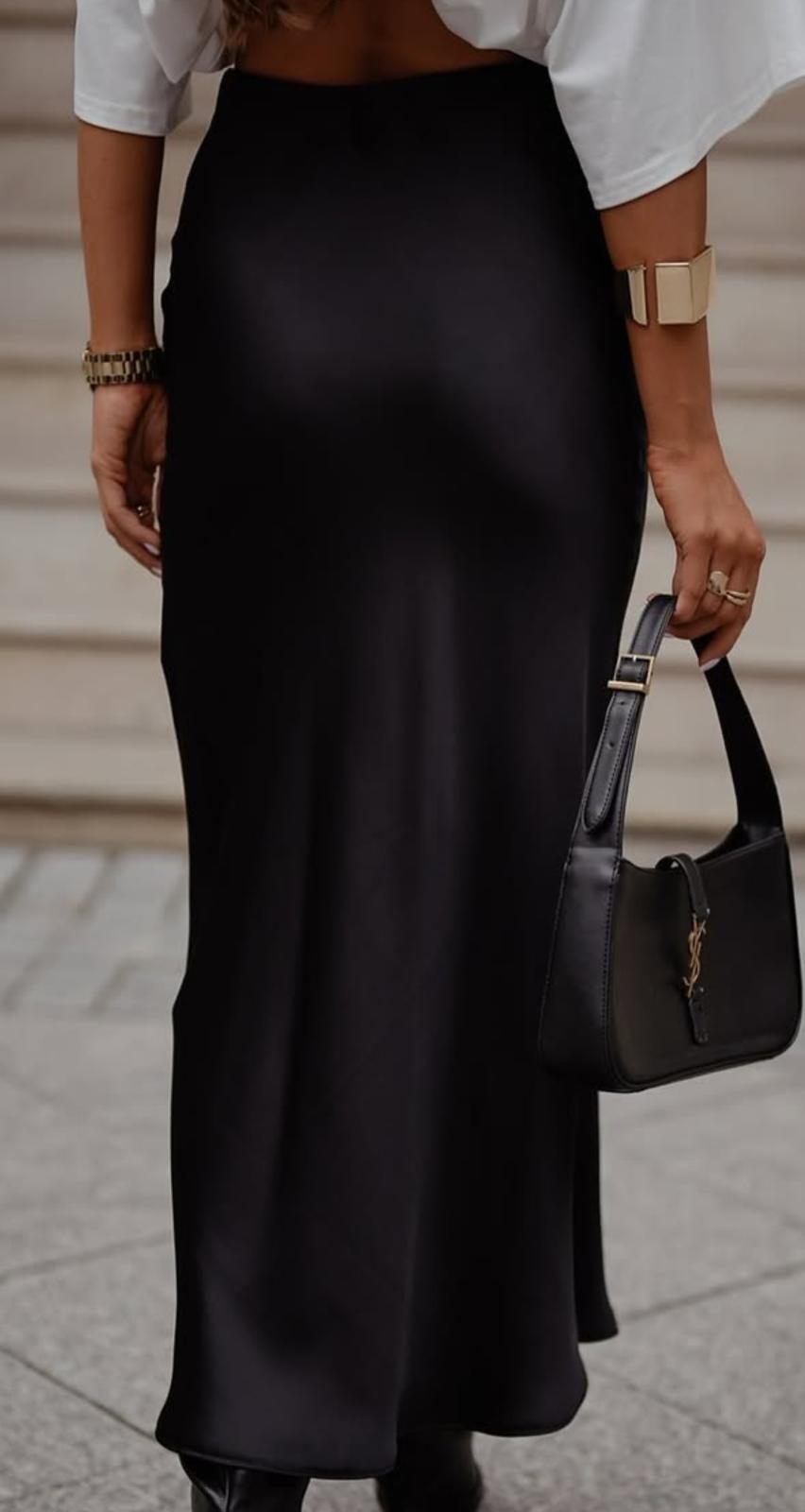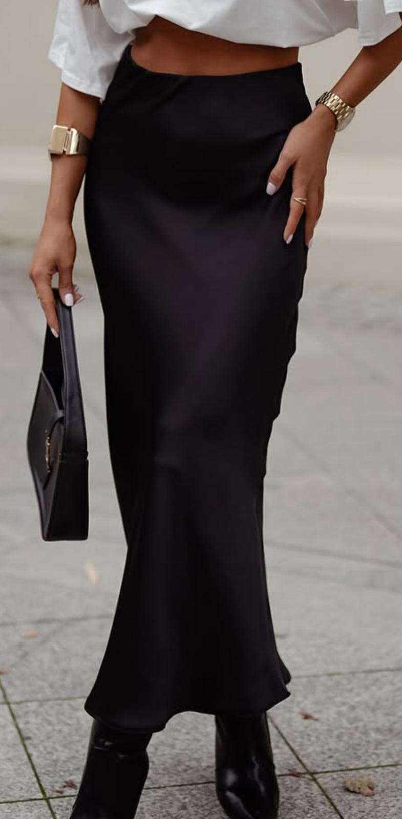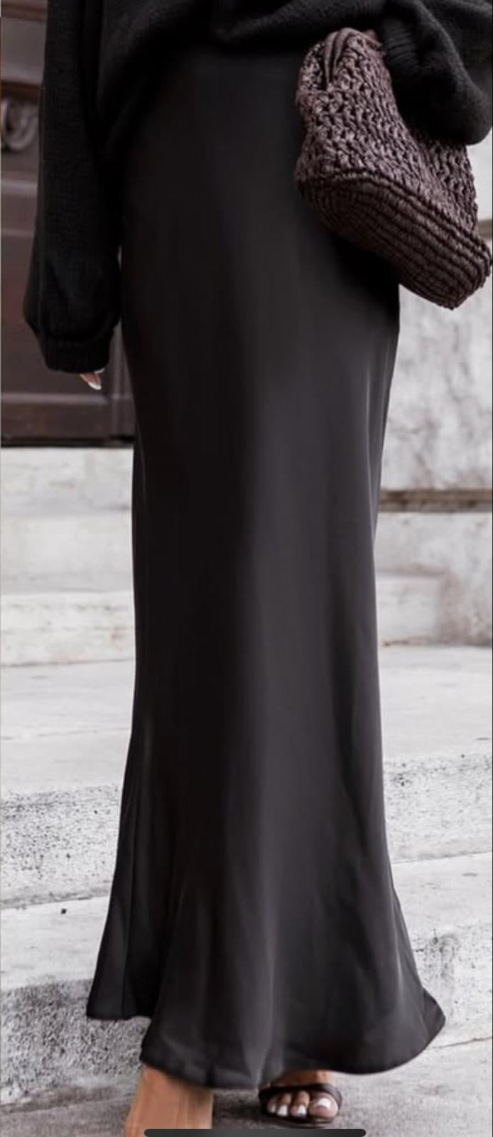 Questa gonna lunga in raso offre una silhouette elegante e fluida, ideale per occasioni formali o serate speciali. Il tessuto satinato conferisce un raffinato effetto lucido che cattura la luce con delicatezza, valorizzando ogni movimento. La sua vestibilità avvolgente garantisce comfort senza rinunciare allo stile, rendendola un capo versatile e sofisticato per il guardaroba femminile.