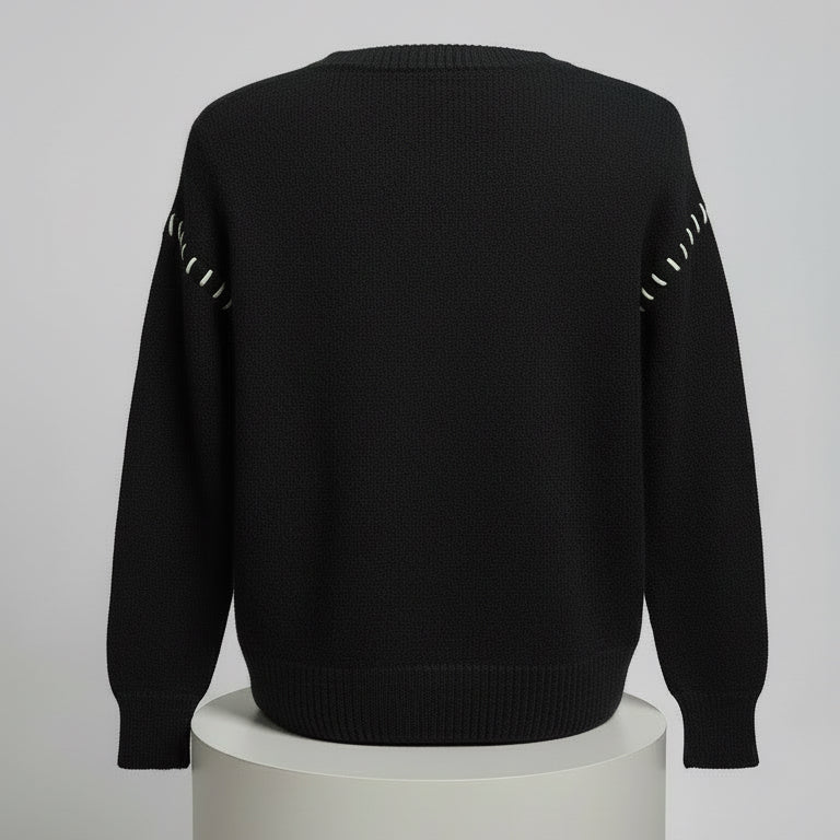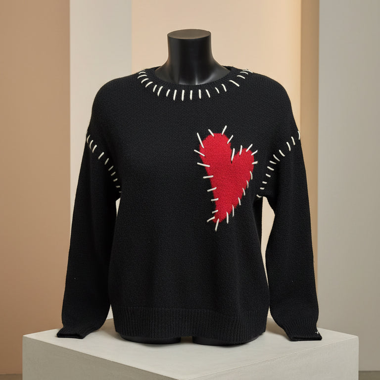 Maglioncino raffinato con inserti a contrasto che catturano lo sguardo. Cuciture decorative e un delicato cuore ricamato aggiungono carattere e personalità al capo. La vestibilità asciutta valorizza la silhouette, mentre la lunghezza generosa che scende sopra il fianco garantisce comfort e eleganza senza compromessi. Perfetto per chi ricerca dettagli curati in un pezzo versatile e moderno.