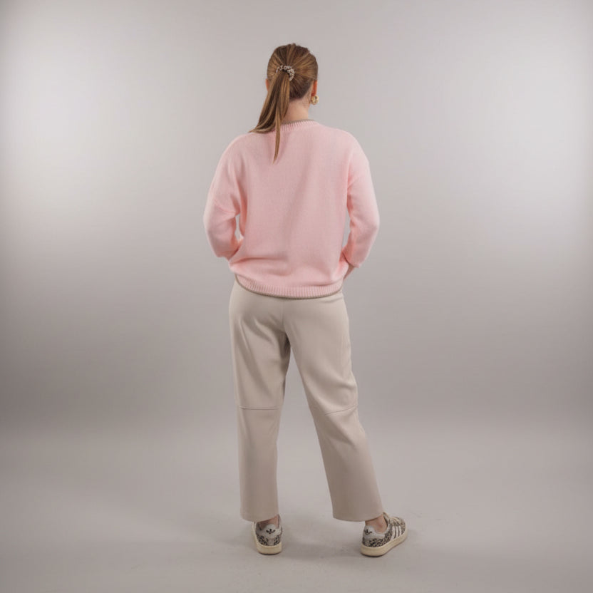 Maglioncino con ricamo che cattura lo spirito del design contemporaneo. La vestibilità over regala una silhouette rilassata e sofisticata, perfetta per chi ricerca comfort senza compromessi stilistici. Dettagli ricercati e materiali nobili rendono questo capo un essenziale versatile da stratificare in ogni stagione.