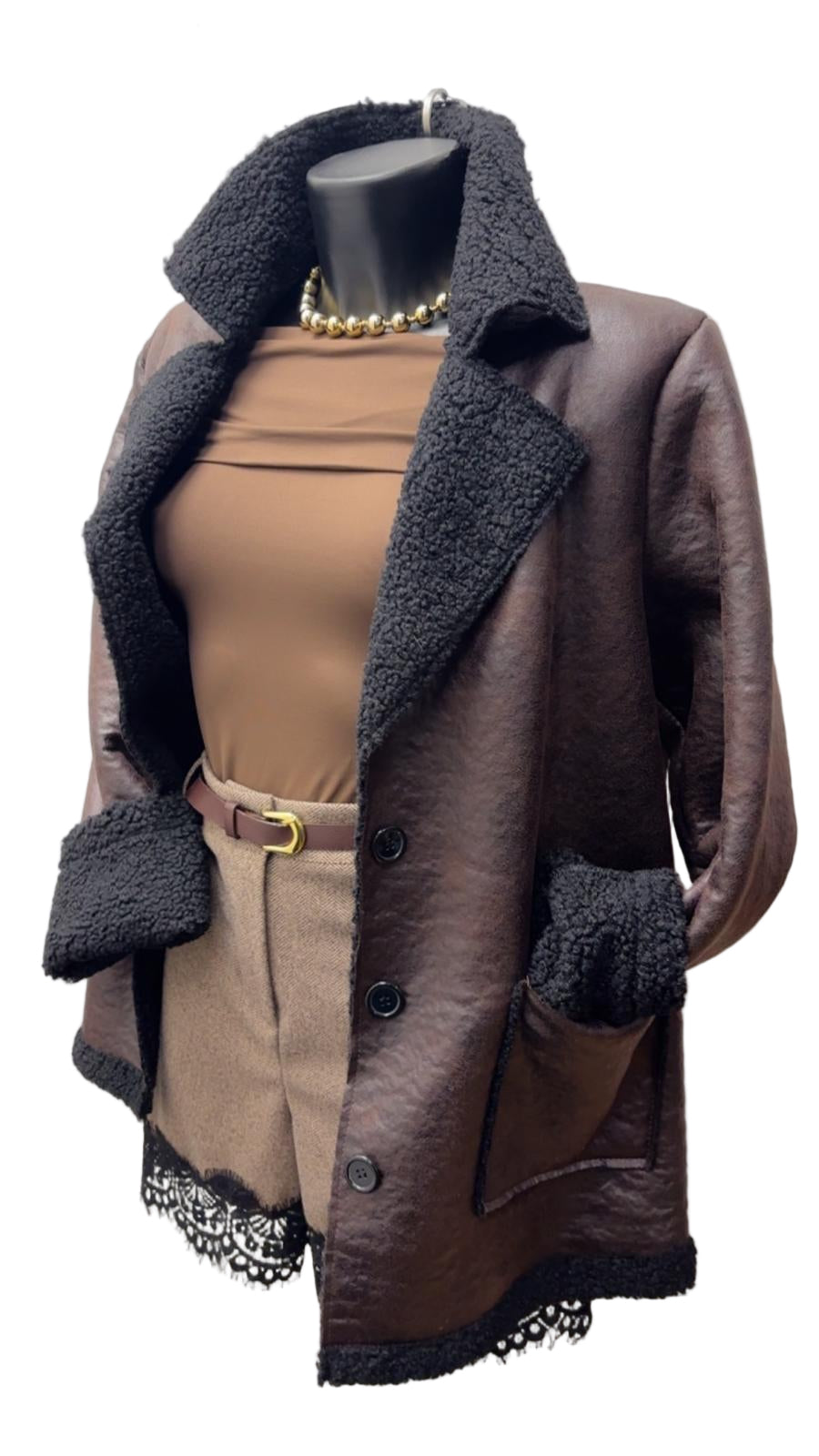Questa giacca in montone ecopelle con bottoni unisce eleganza e funzionalità per affrontare i mesi freddi con stile. Realizzata in materiali sintetici di alta qualità, garantisce calore e resistenza senza rinunciare a un design raffinato. I bottoni assicurano una chiusura sicura e aggiungono un dettaglio distintivo, rendendo questo capo versatile e ideale per un look contemporaneo ed esperto.