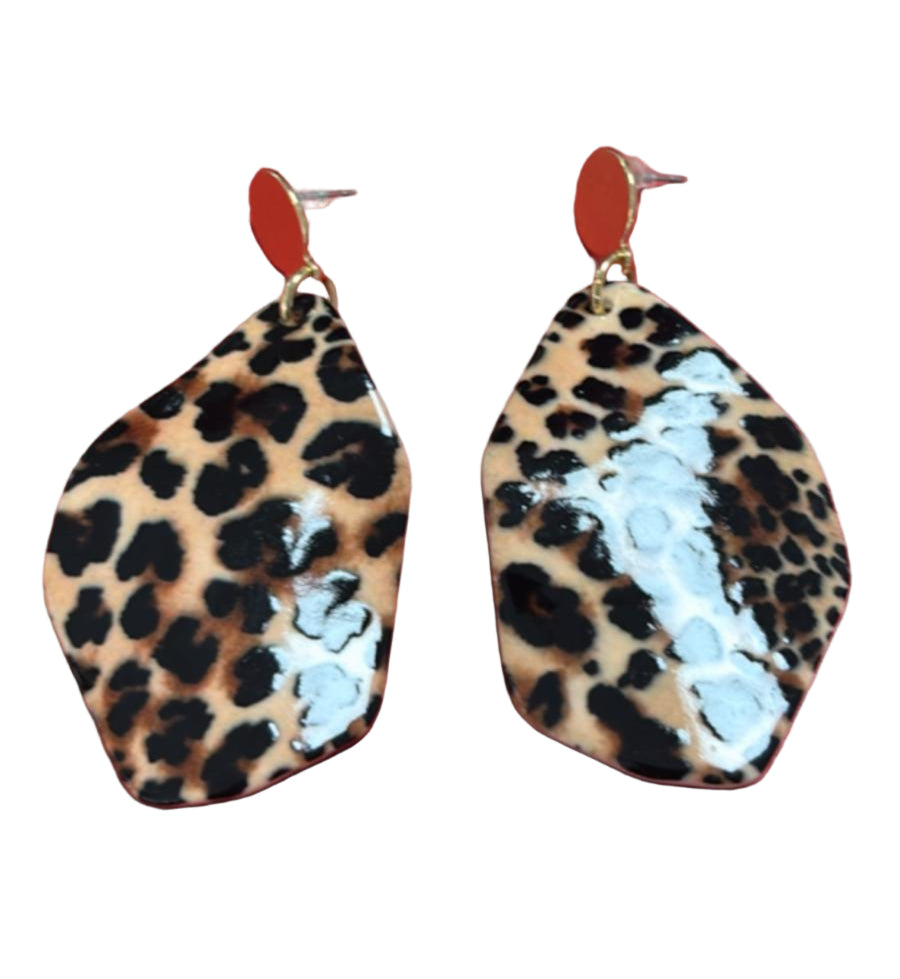 Orecchini maculati caratterizzati da un design sofisticato e una stampa unica che richiama l'eleganza audace delle fantasie animalier. Realizzati con materiali di alta qualità, garantiscono resistenza e comfort, rendendoli perfetti per chi desidera un accessorio distintivo che valorizzi ogni look, dal più casual al più elegante.