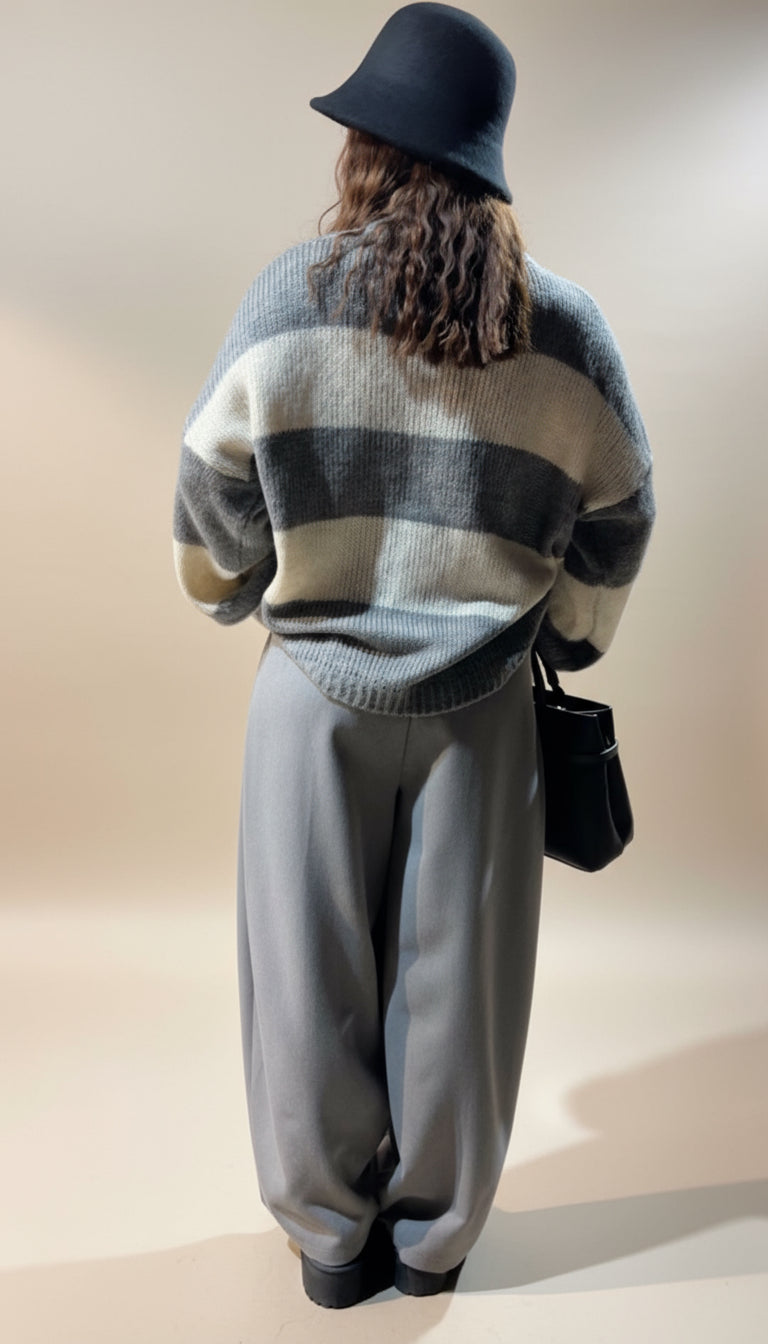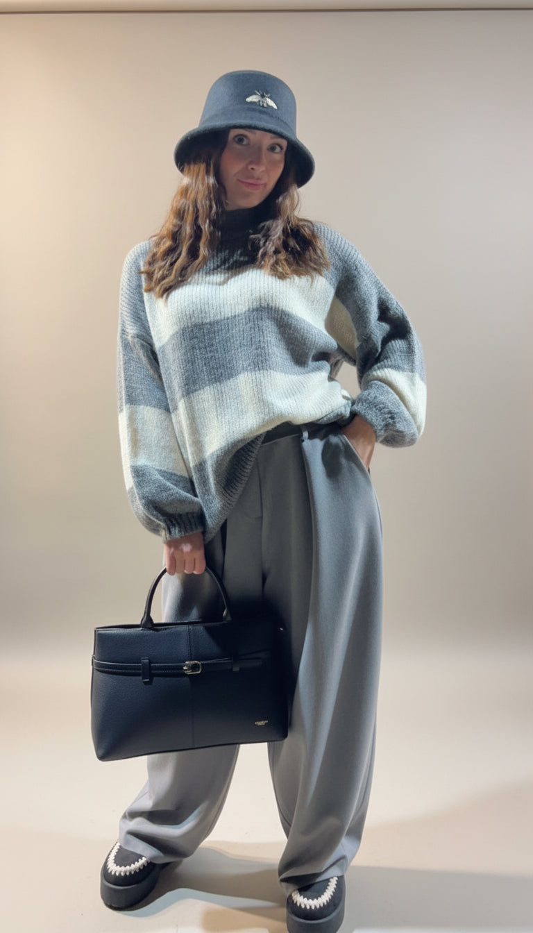 Pantalone dalla silhouette generosa e avvolgente, realizzato in punto milano per un comfort senza compromessi. La vestibilità over regala movimento e libertà, perfetta per chi ama uno stile contemporaneo e rilassato. Il tessuto strutturato mantiene la forma durante il giorno, mentre la gamba ampia crea un effetto elegante e sofisticato. Un capo versatile che si adatta a molteplici occasioni, dal casual al semi-formale.