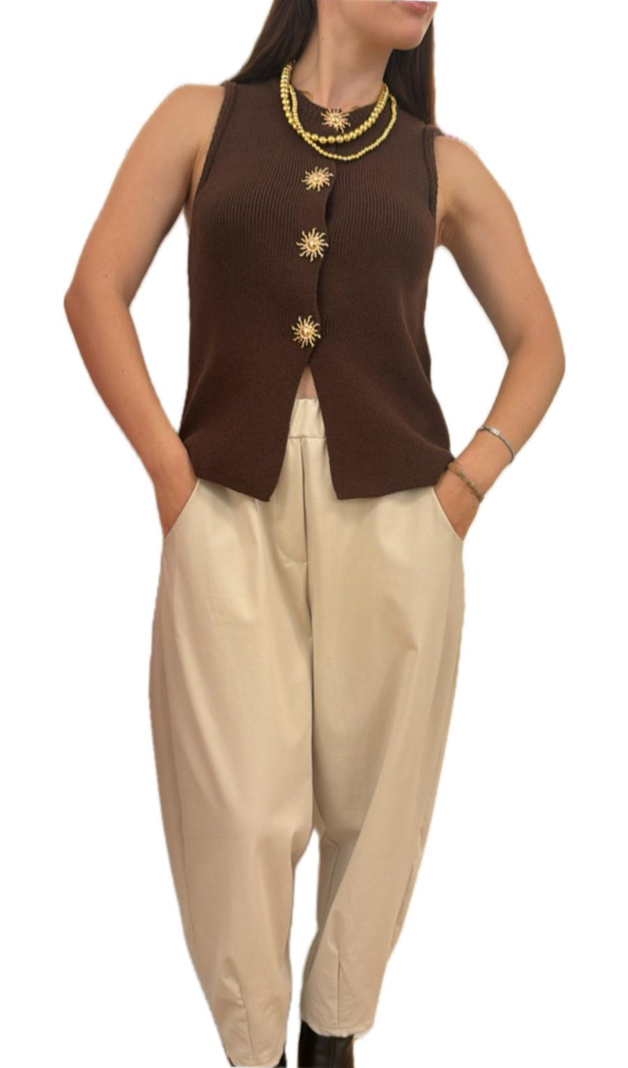 Questo pantalone balloon in tessuto combina stile contemporaneo e comfort grazie alla sua silhouette ampia e arrotondata. Realizzato con materiali di qualità, garantisce una vestibilità comoda senza rinunciare a un aspetto curato e sofisticato. Ideale per chi cerca un capo versatile che valorizzi la figura conferendo un tocco di originalità al guardaroba.