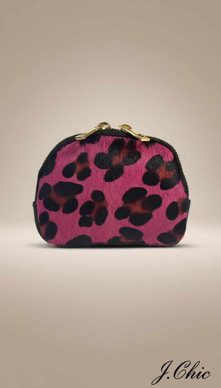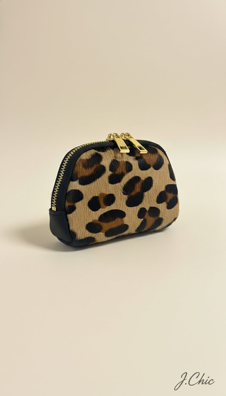 Portamonete pratico e raffinato in ecopelliccia maculata sul davanti, con retro in ecopelle liscia. Design capiente che accoglie monete, carte, chiavi e piccoli oggetti senza ingombro. La texture animalier aggiunge carattere a ogni outfit, mentre i materiali ecologici rispecchiano una scelta consapevole. Perfetto per chi non vuole rinunciare a stile e funzionalità.
