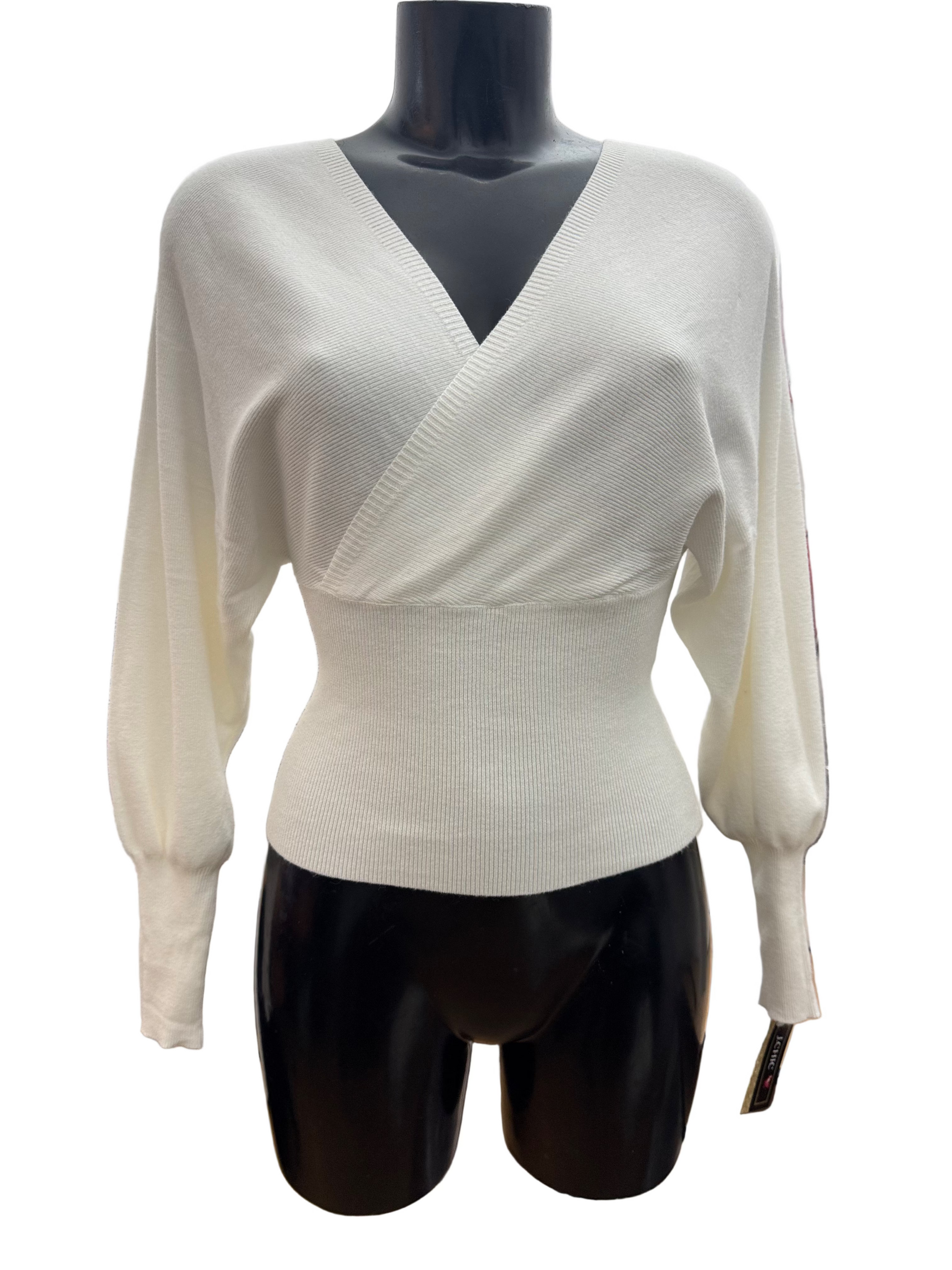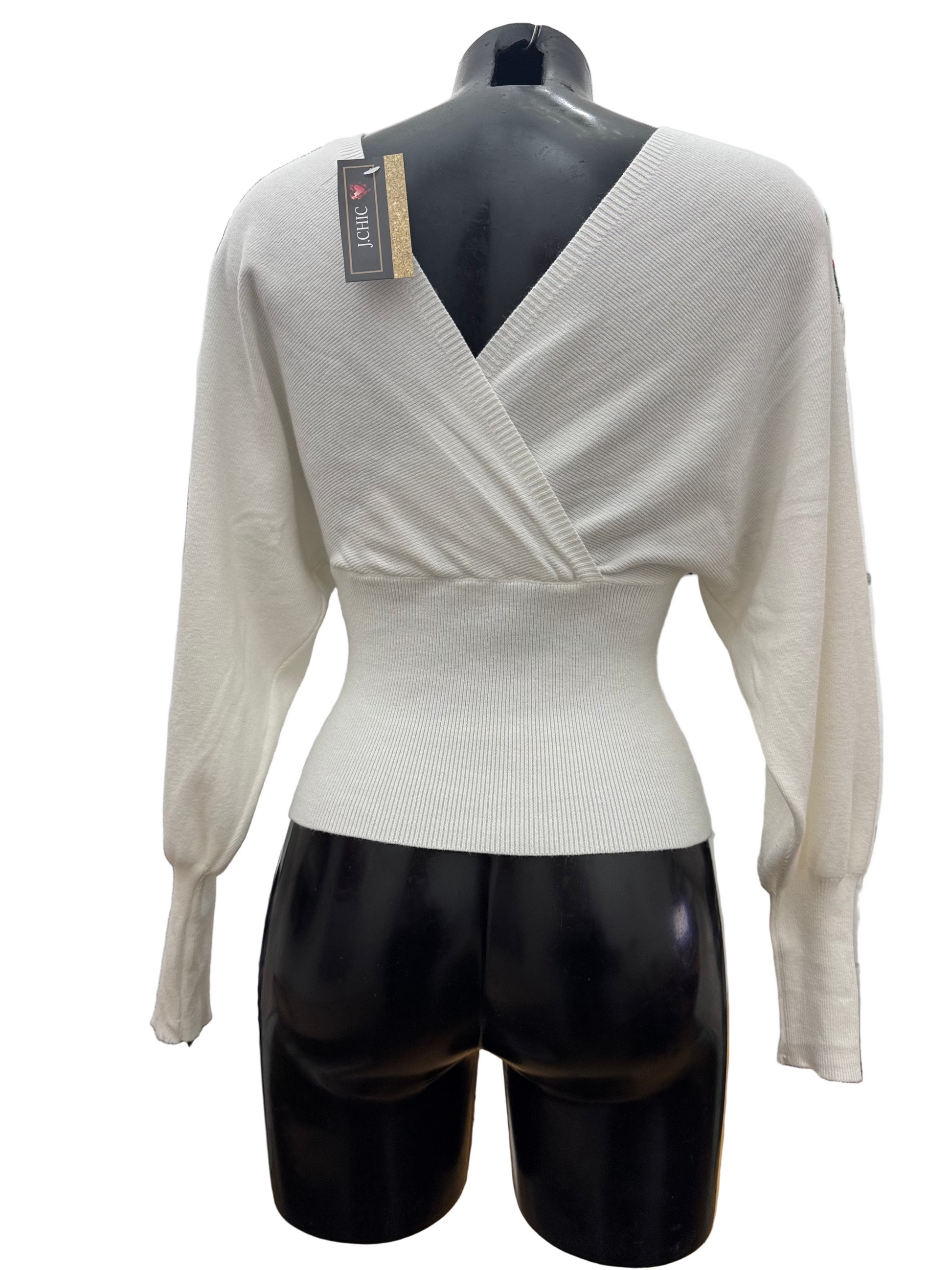 Questa maglia in viscosa sapientemente realizzata presenta un sofisticato design incrociato che migliora la scollatura e la silhouette. Realizzato in viscosa morbida e traspirante, garantisce comfort per tutto il giorno mantenendo un aspetto lucido. Perfettamente adatto sia per ensemble formali che casual, questo pezzo versatile aggiunge un'eleganza senza sforzo al tuo guardaroba.