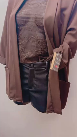 Questi pantaloncini corti ecopelle combinano una silhouette moderna con il look raffinato dell'ecopelle. Progettati per durare e comfortevoli, forniscono un'alternativa chic , rendendoli un'aggiunta versatile ed elegante a qualsiasi guardaroba.