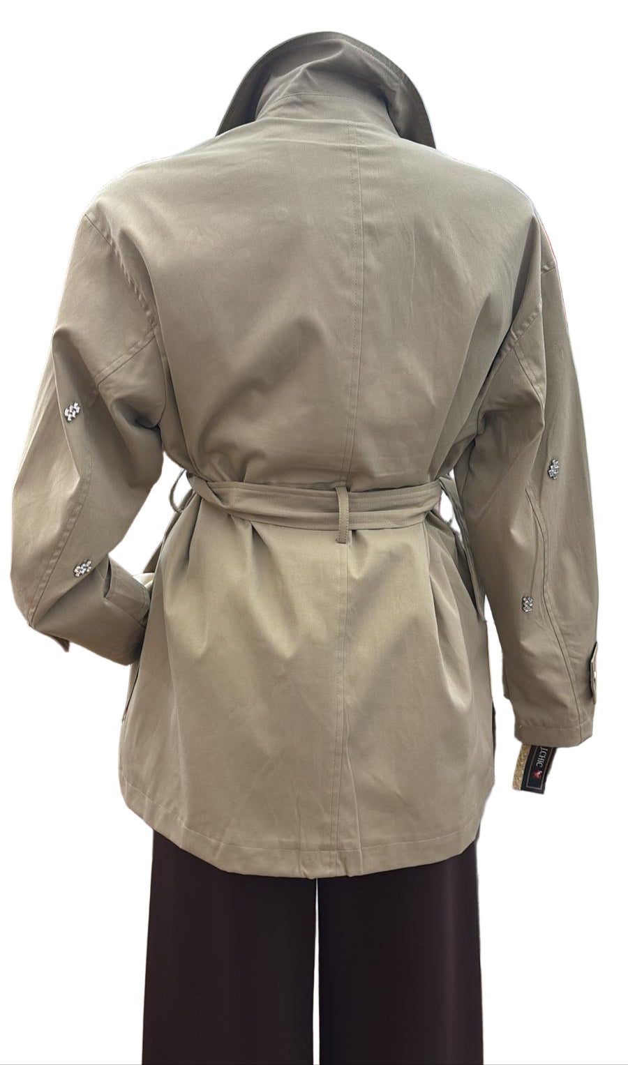 Questo trench corto con strass è la scelta ideale per chi cerca un capo raffinato con un tocco luminoso discreto. I dettagli in strass aggiungono punti luce eleganti, arricchendo il design minimalista senza appesantirlo. Perfetto per valorizzare qualsiasi outfit con stile e raffinatezza, unendo praticità e un’eleganza sofisticata.